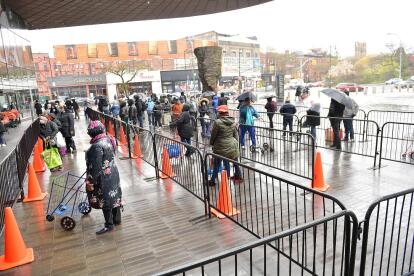 En las calles de Nueva York, cientos de personas se forman a diario para recibir alimentos, en filas que se pueden extender por varias cuadras.