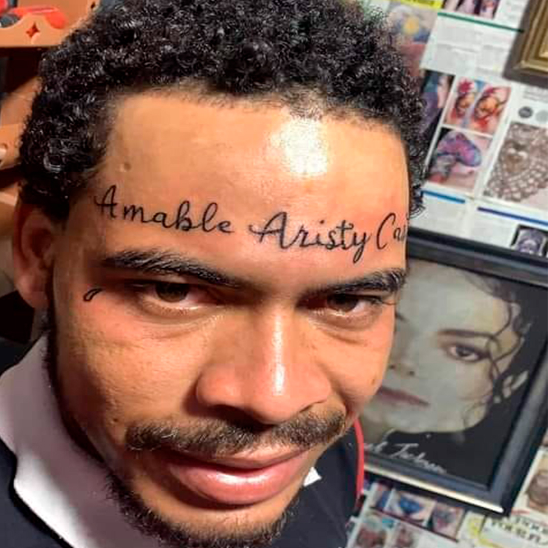 EL NUEVO DIARIO, SANTO DOMINGO.- Circula en redes sociales la imagen de un seguidor de Amable Aristy Castro, quien se tatuó el nombre del exsenador en la frente.